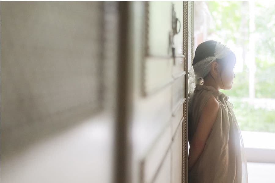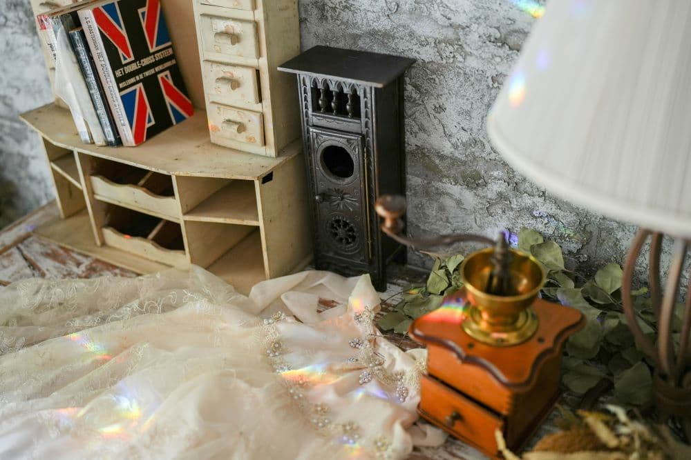 優しい自然光と本物のドライフラワーで、さまざまな表情の写真を撮影。