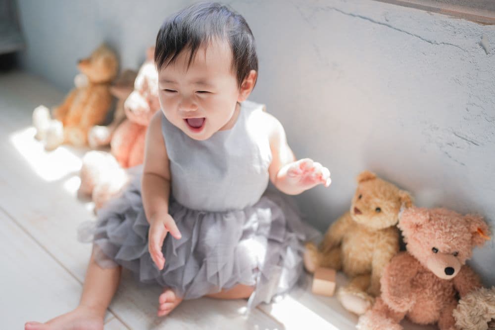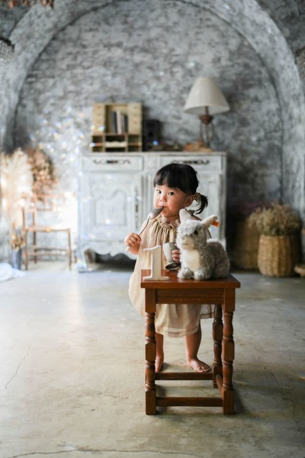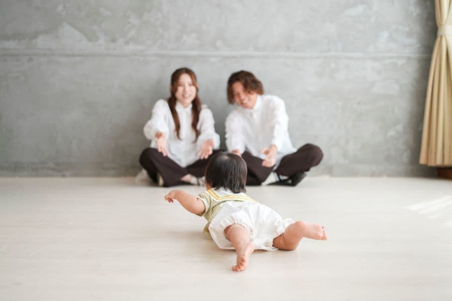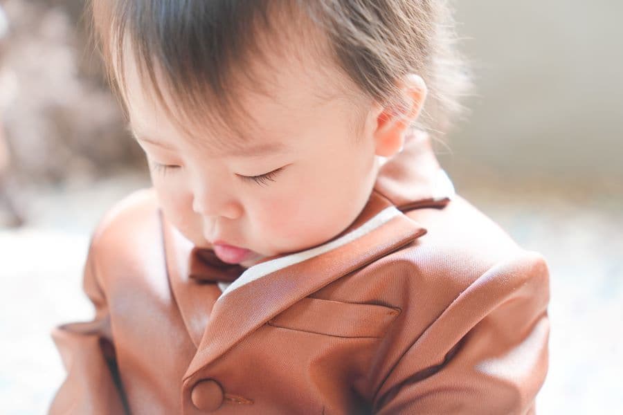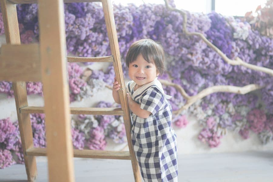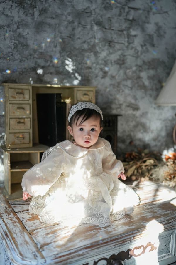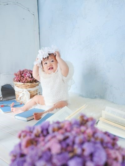 やわらかな光の中で、むちむちとした腕や脚、ころんとした佇まいなど、1歳ならではの可愛らしさを丁寧に写します。